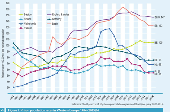 Bis in die frühen 2000er Jahre kann man in den Daten einen Anstieg der Zahl der Inhaftieren in Europa erkennen, was als Ausdruck des „punitive turn“ interpretiert wurde. England und Wales standen als Prototypen für das “neo-correctional model”.