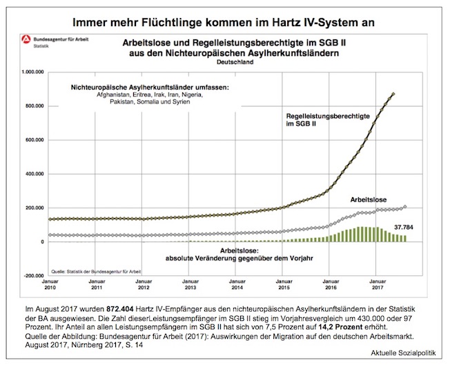 Nun wird sich der eine oder andere fragen, wo denn die Flüchtlinge geblieben sind. Haben die alle Arbeit gefunden? Und wenn nicht: Warum steigt die Zahl der Arbeitslosen nicht an? Wo sind sie geblieben?