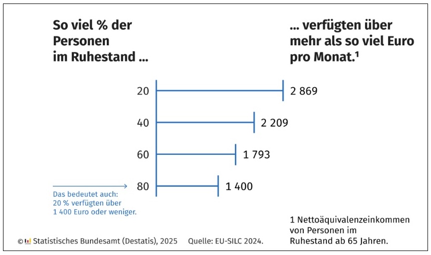 »Die 20 % der Personen im Ruhestand mit dem höchsten Einkommen hatten monatlich mehr als rund 2.870 Euro netto zur Verfügung.«