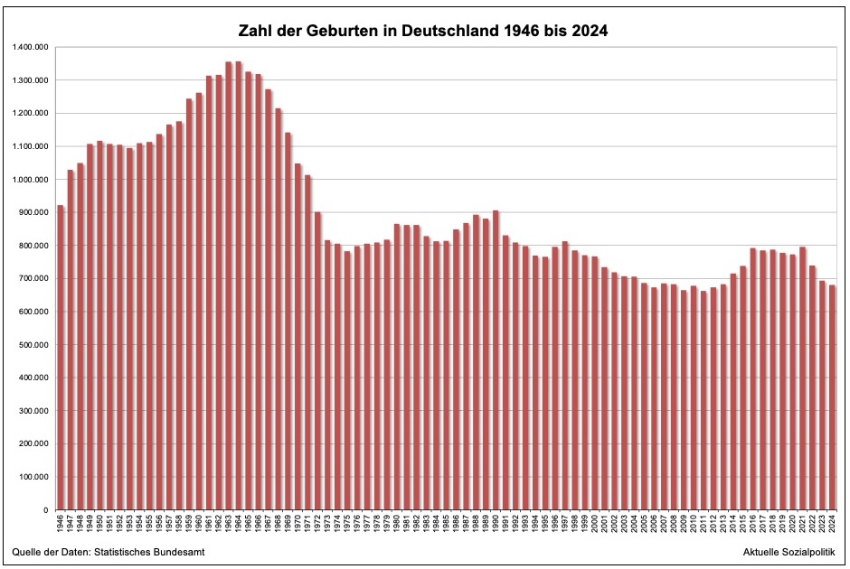 Die Hoffnung auf eine länger anhaltende Geburtenwende im Sinne eines Anstiegs der Geburtenrate musst alsbald wieder begraben werden. Von 2021 bis 2024 ist die Zahl der Geburten in Deutschland um mehr als 80.000 Geburten zurückgegangen.