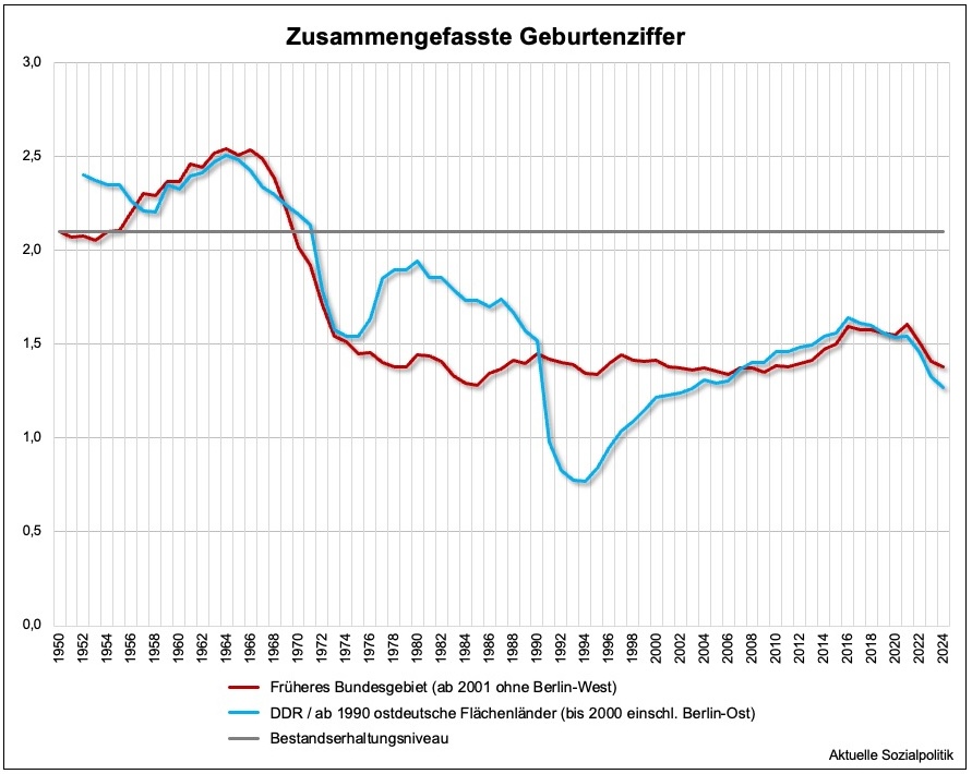 Als das Statistische Bundesamt im Juli 2025 über die neuesten Daten zur (sinkenden) Geburtenrate veröffentlichte, da wurde mit dem Blick über den nationalen Tellerrand darauf hingewiesen, dass die Geburtenziffern in den meisten Staaten der Europäischen Union (EU) gesunken sind. »Dadurch ergibt sich 2023 für alle 27 EU-Staaten mit durchschnittlich 1,38 Kindern je Frau ein deutlich niedrigerer Wert als zehn Jahre zuvor mit 1,51 Kindern je Frau im Jahr 2013. Deutschland lag 2023 im Europäischen Durchschnitt.«