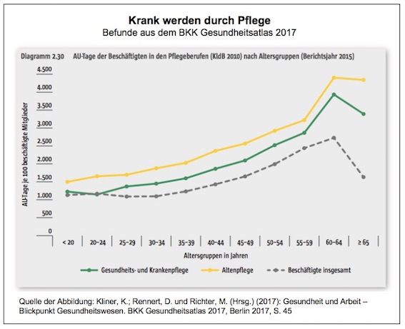 Und natürlich muss man auch die für einen Streik nicht wirklich förderlichen Ausgangsbedingungen der Arbeit an sich in Rechnung stellen, denn die Pflegekräfte arbeiten ja nicht in einer Schraubenfabrik, wo man das Band abstellen kann, sondern in Einrichtungen, in denen Menschen auf eine umfassende Pflege und Betreuung angewiesen sind. Dort einen Streik zu organisieren wäre weitaus schwieriger und anspruchsvoller als in „normalen“ Arbeitsbereichen.
