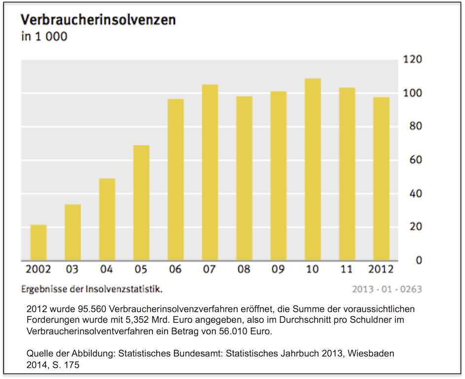 Das alles lässt sich dem SchuldnerAtlas 2017, der von Creditreform veröffentlicht wurde, entnehmen. »Überschuldung kann laut der Studie viele Ursachen haben: Dazu zählen Arbeitslosigkeit, Krankheit, Scheidung, Sucht oder Unfälle. Noch immer ist die Gefahr besonders groß, wenn Menschen ihre Arbeit verlieren: Rund ein Fünftel aller Überschuldungsfälle sind auf Arbeitslosigkeit zurückzuführen. Auf einen Zeitraum von zehn Jahren gesehen treten die sogenannten ökonomischen Auslöser wie eben Arbeitslosigkeit oder eine gescheiterte Selbstständigkeit jedoch seltener auf. Deutlich zugenommen hat hingegen das Risiko, durch Erkrankung, Sucht oder Unfall in die Überschuldung zu rutschen«, kann man diesem Artikel über den neuen SchuldnerAtlas entnehmen: Wie die Deutschen in die Überschuldung rutschen.