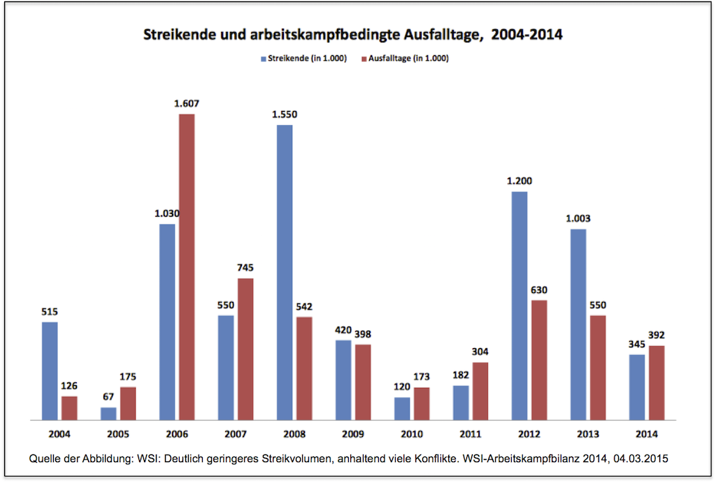 Und wie ist es mit der heftig diskutierten „Streikwelle“ durch diese Gewerkschaften, die auch Tietz an die Wand malt? Auch hier ist wieder ein nüchterner Blick angesagt: »Die Bedeutung der Streiks in der Tarifpolitik der Berufsgewerkschaften wird deutlich überschätzt. Es gibt zwar eine Reihe von spektakulären Arbeitskämpfen, die von Berufsgewerkschaften durchgeführt worden sind, aber keineswegs nur solche. Die normale Tarifrunde einer Berufsgewerkschaft ist nicht immer durch Warnstreiks oder Streiks gekennzeichnet. Im Gegenteil: Wir haben in den letzten Jahren ein völlig normales Tarifgeschäft beobachten können«, so Bispinck in seiner Analyse.